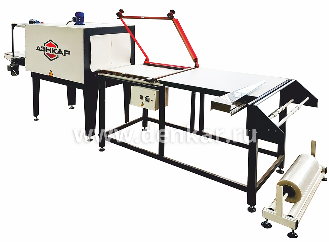 Машина состоит из раздельных модулей и оснащена L-образным термоножом импульсного нагрева, приемного рольганга, напольного рулонодержателя.
